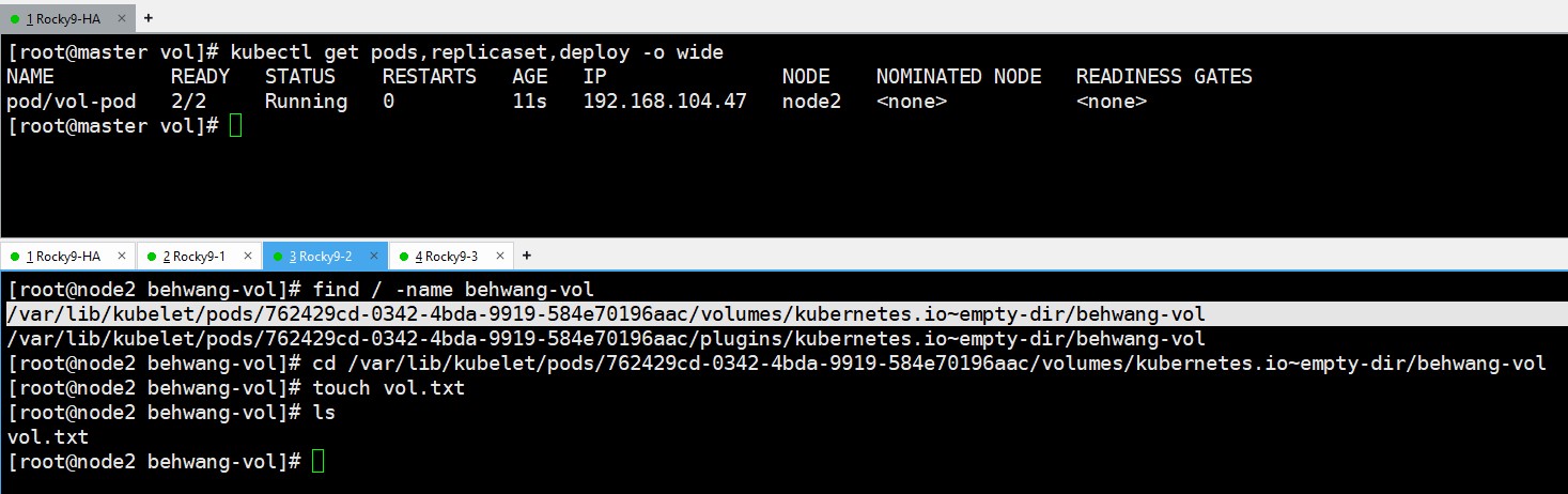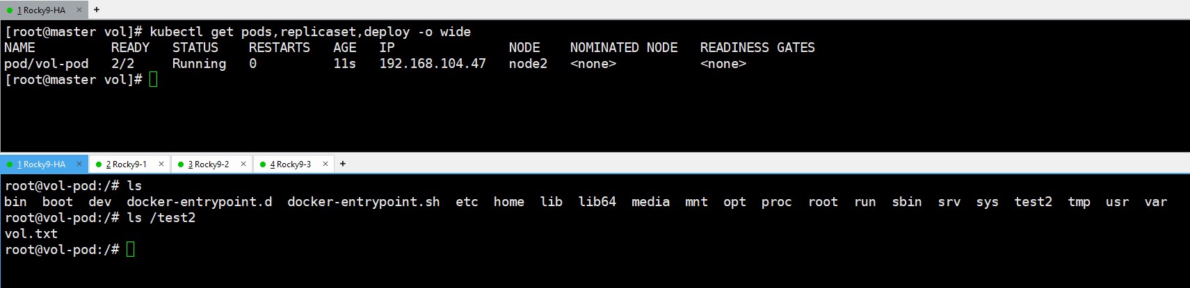 step1) 디폴트 컨테이너에 쉘 접속 : kubectl exec -it vol-pod -- sh